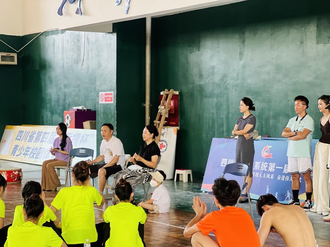 中华人民共和国第十二届少数民族传统体育运动会(以下简称:第十二届全国民族运动会)四川省代表团表演项目于7月18—8月14日组织进行了第二阶段排练工作。8月14日中午,公司领导班子及项目负责人就第十二届全国民族运动会四川省代表团表演项目第二阶段的完成情况在武侯校区球类馆进行检查。