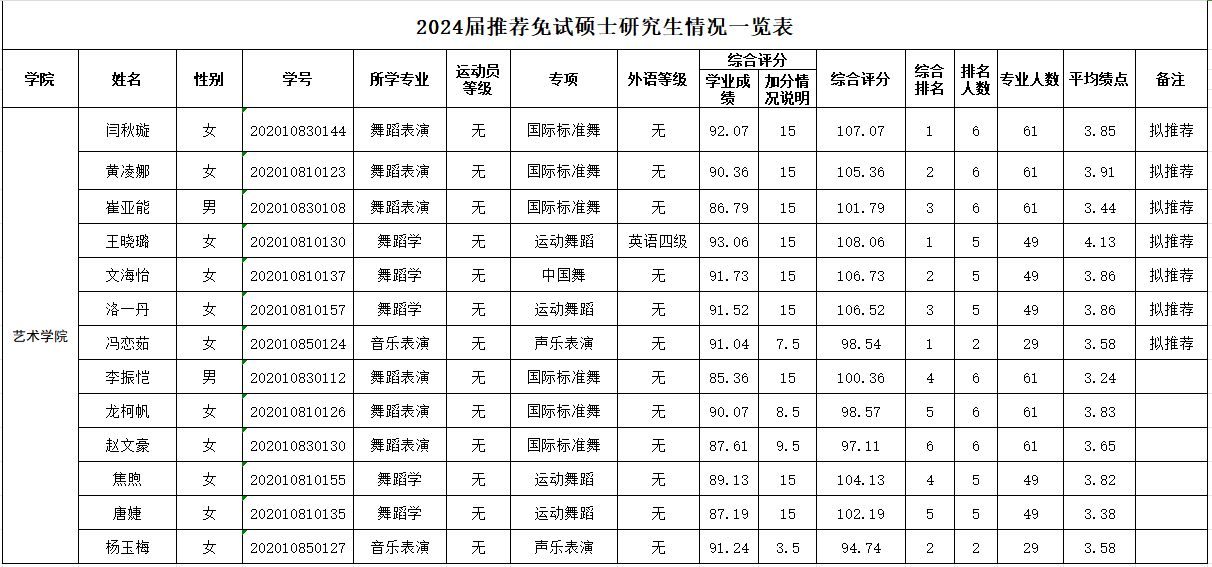 根据《304永利集团登录入口推荐2024届优秀本科毕业生免试攻读研究生实施办法》、《304永利集团登录入口推荐2024届优秀本科毕业生免试攻读研究生实施办法》,经公司推免遴选小组讨论、党政联席会审议,拟推荐2024届优秀本科毕业生免试攻读研究生名单如下: