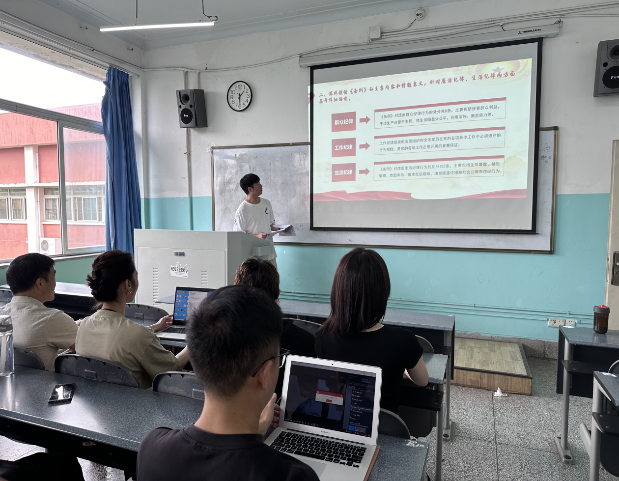 七一前夕,304永利集团登录入口各党支部书记也分别为师生党员讲授党纪学习教育纪律党课,公司党委委员分别到场指导。
