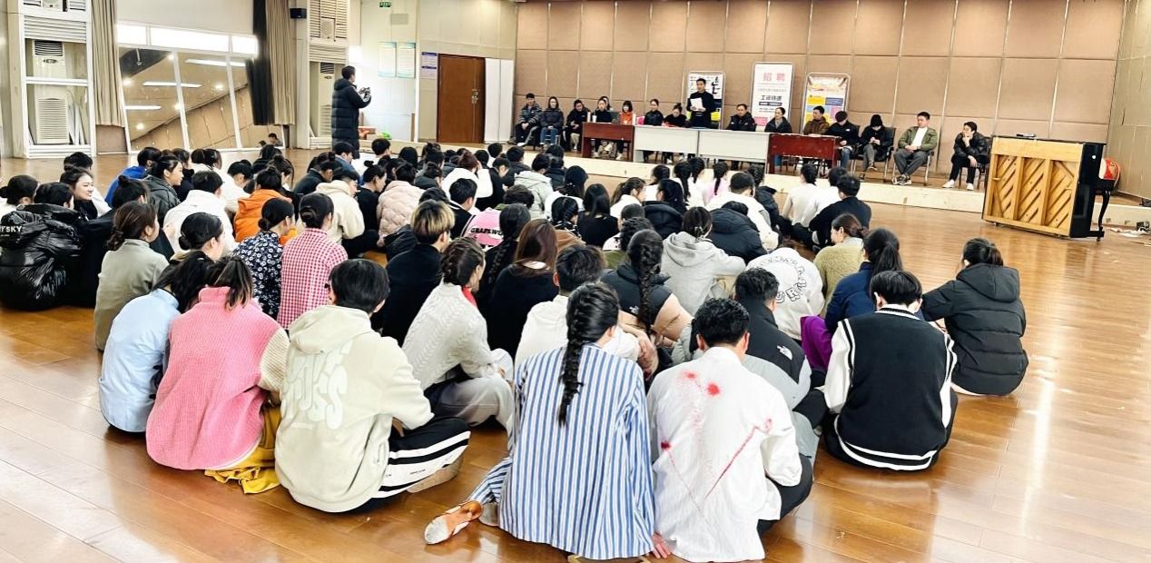 为推动毕业生就业工作,搭建员工就业渠道和供需平台,304永利集团登录入口重时效、抓落实,全方位、多层面开展毕业生就业工作。12月19日中午,利用2024届本科生毕业晚会节目审查的契机,邀请成都舞道大师文化发展有限公司、成都艺医体体育文化发展有限公司、四川云兴舟体育文化传播有限公司等员工企业到校开展现场招聘。公司领导班子、各教研室负责人、辅导员及2024届全体本科毕业生参加了本次招聘会。