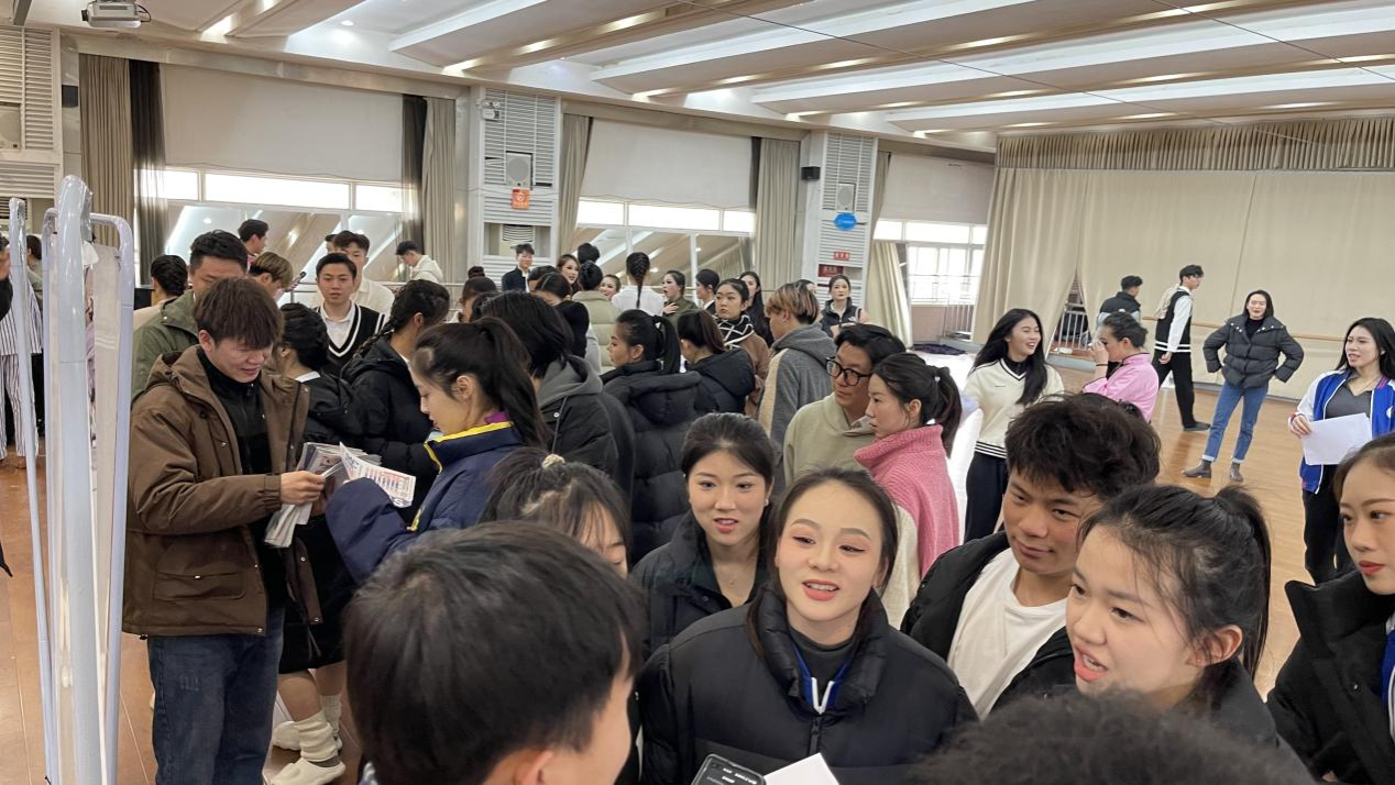 用人单位通过观看2024届毕业生汇报演出节目排练,对毕业生基本情况有了初步了解,毕业生通过招聘企业对公司现状、业务范围、岗位需求、应聘条件、薪资待遇、员工福利等方面的的介绍认识和了解企业。自由交流环节同学们积极踊跃索要企业宣传材料,认真咨询交流,现场气氛热情活跃。会后用人单位表示已经与部分毕业生达成实习或就业意向,双方将进行持续地互动了解。