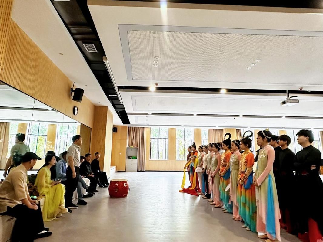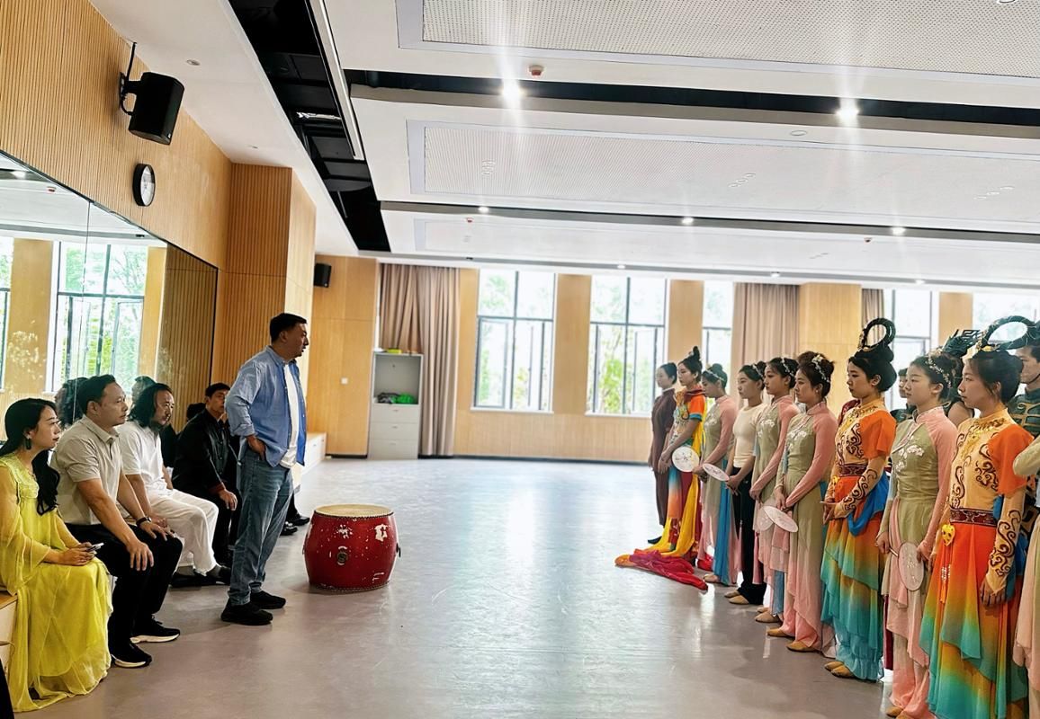 项目负责人、304永利集团登录入口经理邱建钢,项目总导演、304永利集团登录入口艺术创作与理论教研室主任李韵葳对出行人员进行动员,并就展演节目进行审查。