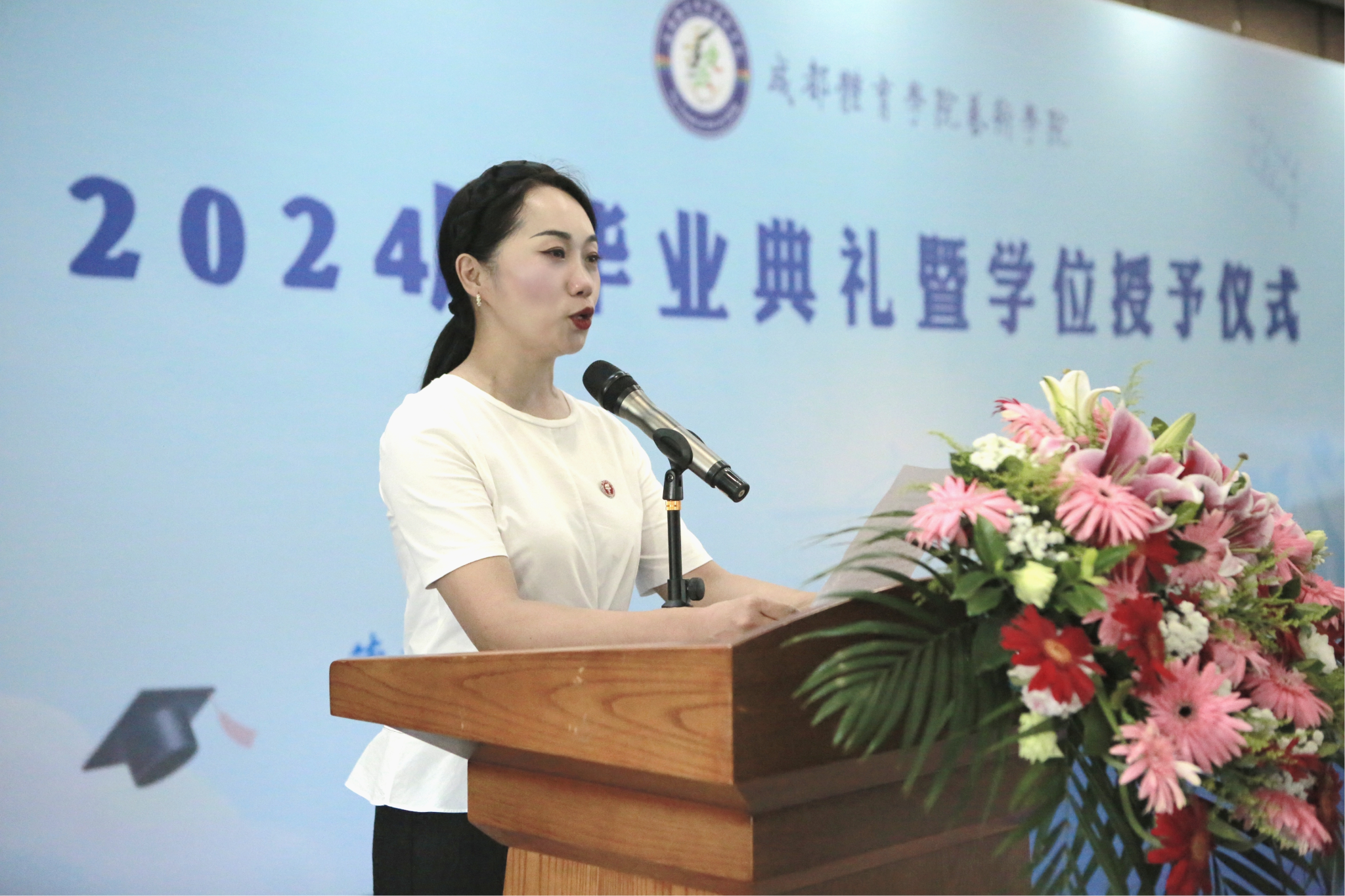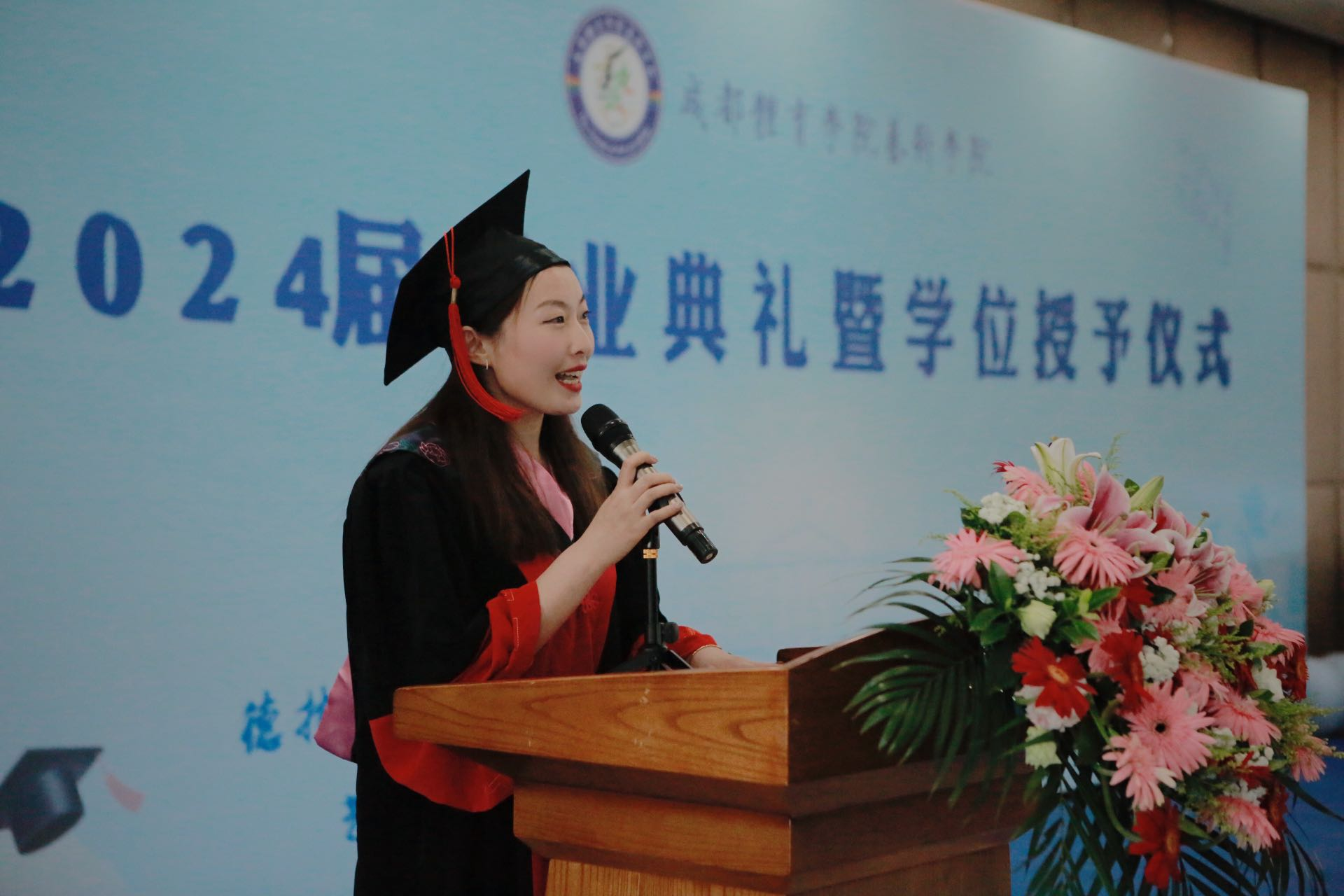 公司首位培养毕业的博士研究生孙丽红作为毕业生代表发言,她以最诚挚的语言感恩母校的培养,感谢老师们的教导,并寄语每一位毕业生青春之光必将绚烂绽放。