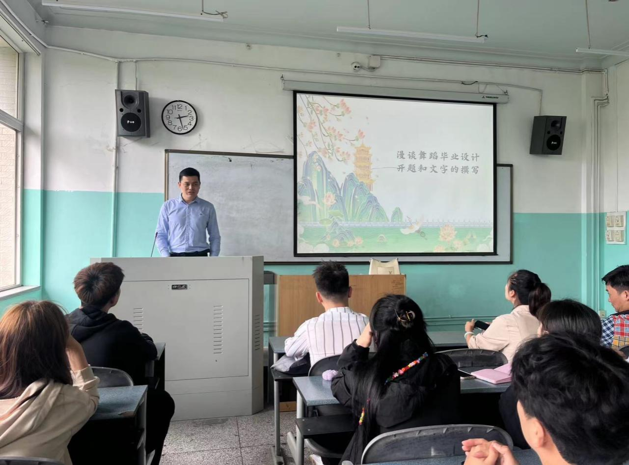 其次,陈泽刚副教授结合舞蹈表演专业发展特色对毕业设计进行专题指导。其指出,毕业设计要将理论与编创实践相结合,体现逻辑性、理论性和创新性;要运用所学的基本理论和专业知识分析问题、解决问题,在写作过程中要遵循论文的一般结构安排,注重学术语言规范。