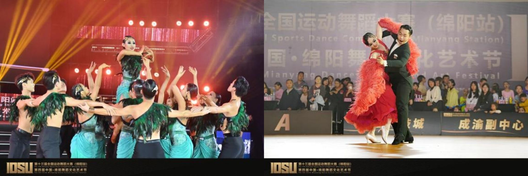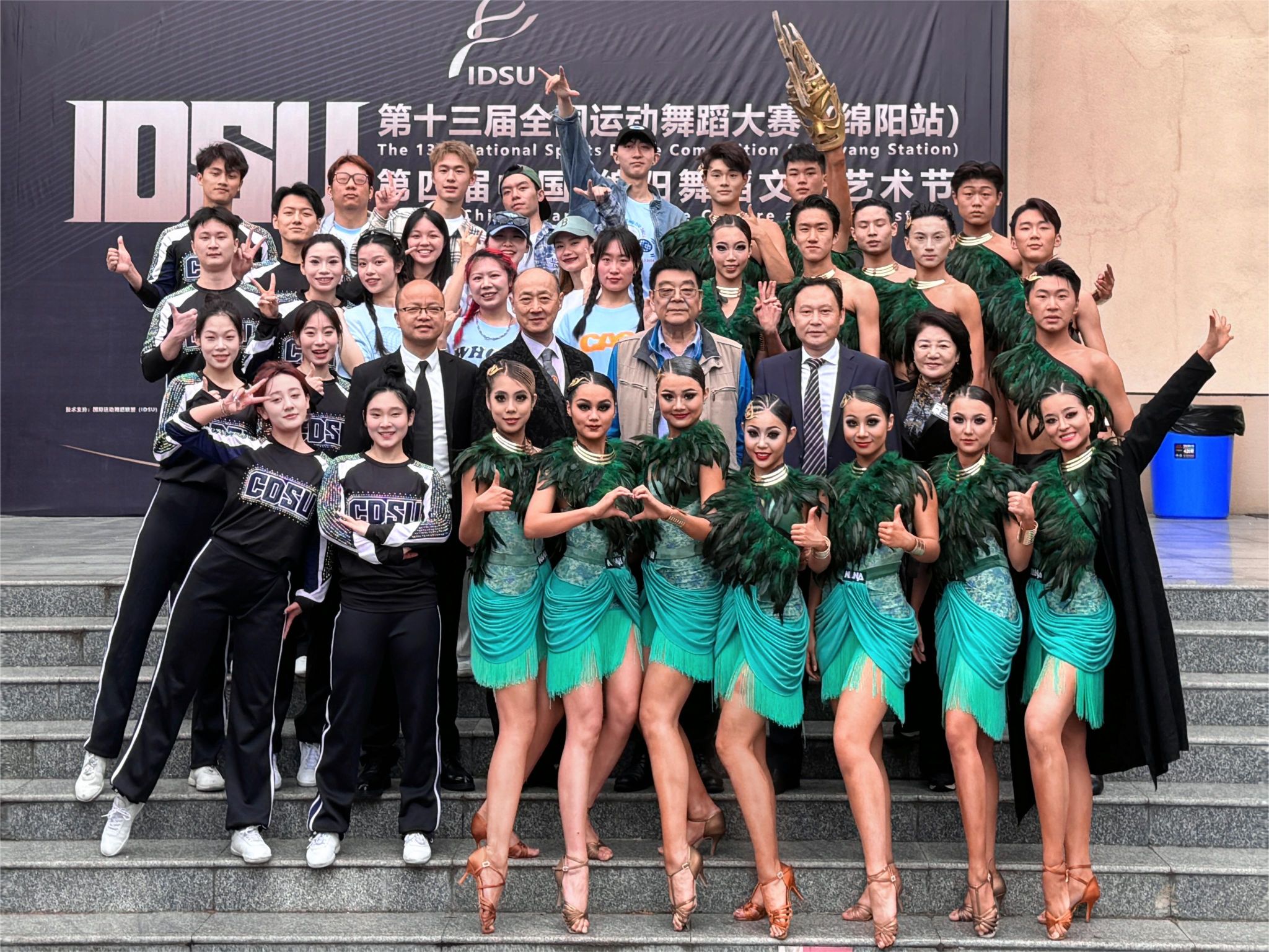 2024年5月1日—5月2日,由全国体育院校艺术类专业建设协作会、全国运动舞蹈推广委员会联合主办的“IDSU第十三届全国运动舞蹈大赛(绵阳站)暨第四届中国·绵阳舞蹈文化艺术节”在绵阳市涪城体育馆举办。公司90余名本科生和研究生参加,在参赛的国际标准舞、民族民间舞、有氧舞蹈、啦啦舞、街舞等舞种当中,经过多轮角逐获得14枚金牌、11枚银牌、14枚铜牌的优异成绩,研究生姚子聪同学原创国标剧目《丛蜀》获得大学乙组艺术表演舞冠军。