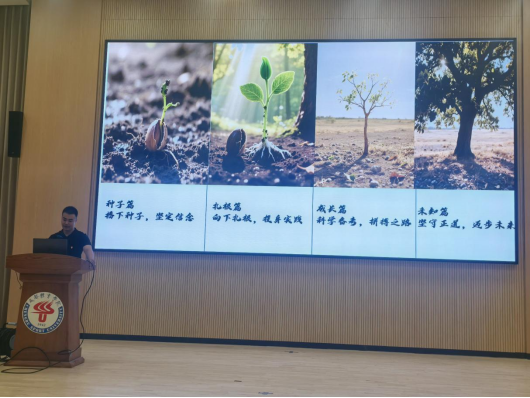 宣讲会上,刘瀛以“种树”为喻,生动展现其大学四年蜕变之旅。从2021年加入员工会,逐步成长为员工会主席,刘瀛在实践锻炼中坚定信念,“在员工会的经历,让我学会突破舒适圈、自我驱动和时间管理,为未来铺就成长基石。”他积极参与抗疫督导、文艺晚会、三下乡实践等丰富活动,在志愿服务与专业实践中锤炼意志品质。